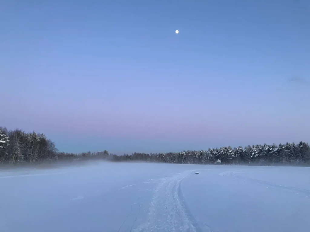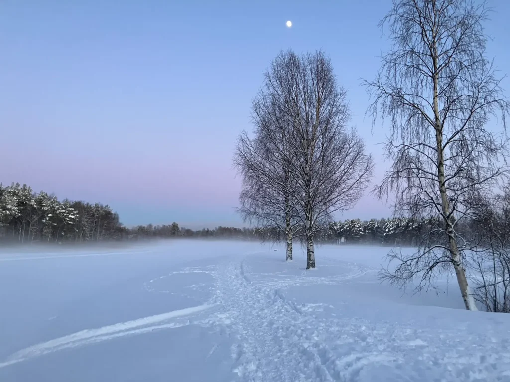 フィンランド北部では、太陽が浅い角度でゆっくり沈むので、薄明の時間が長めです。