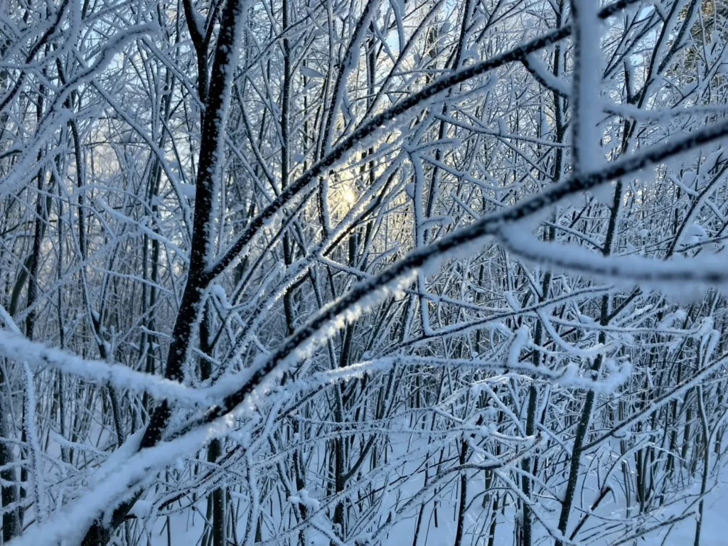 乾燥した雪と低温のため、空気中の氷の結晶がキラキラ輝く「ダイヤモンドダスト」もよく見られました。