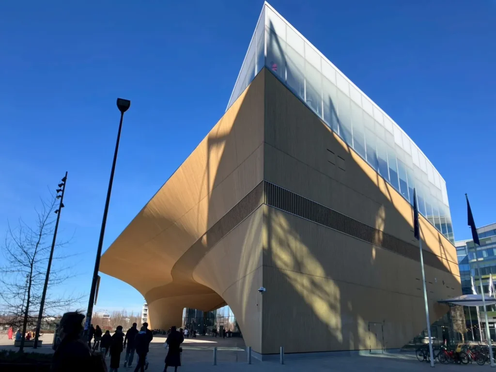 フィンランド独立100周年を記念して建てられた施設で、革新的なデザインと構造を持つ外観が特徴です。
