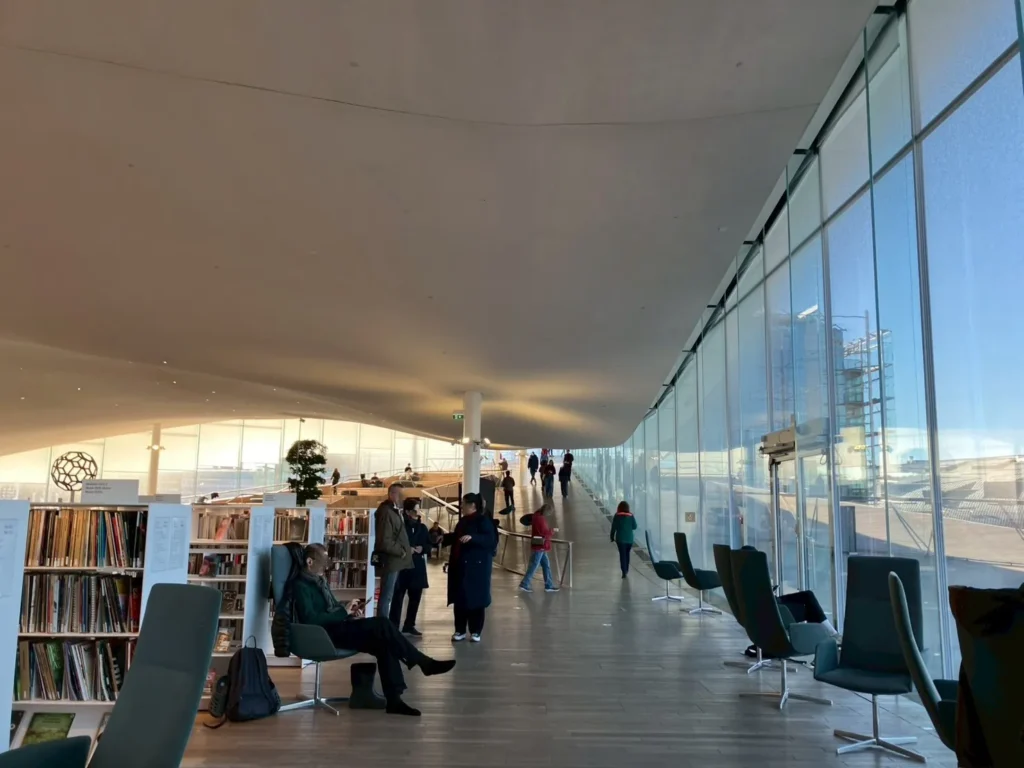 また、開放的でリラックスできる空間設計も特徴で、市民のリビングルームとしての役割を果たしていることがよく分かります。