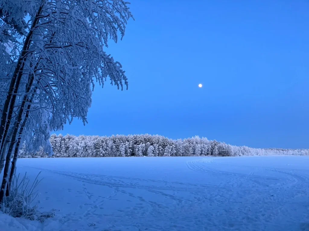 フィンランド語では「Sininen Hetki(シニネン・ヘトキ)」と呼ばれ、冬の風景に独特の雰囲気を与えます。