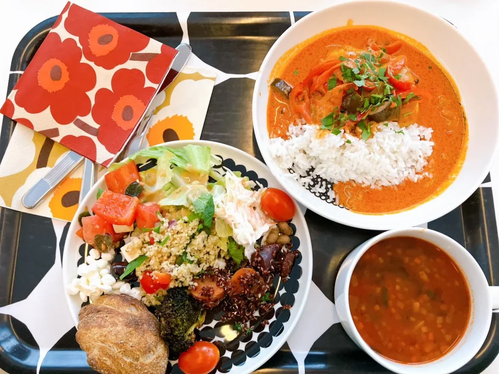 プレートやトレイ、マグカップなど、食堂で使われている食器はすべてマリメッコ。