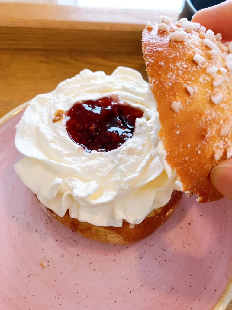 1月末に、オウルの駅前にあるベーカリーカフェ Kreema でジャム入りのラスキアイスプッラを食べました。