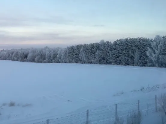朝8時半頃にオウル駅を出発した頃、車窓の外はまだ薄暗く、青みがかった光が広がっていました。