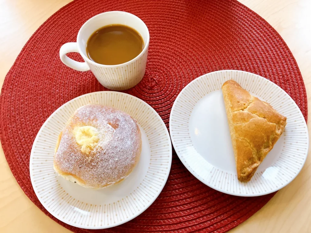 途中で「Antinkaapo」というベーカリーカフェに立ち寄り、Kahvipulla(コーヒー風味のクリームが入った甘いパン)と、Poro・Lohi Pasteija(トナカイ肉とサーモンのパイ)を食べました。