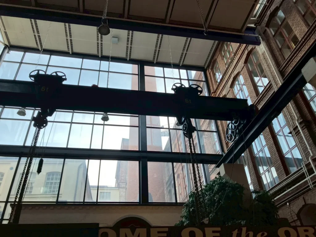 内部にはかつて使われていたクレーンなども残り、工場の面影を感じられます。
