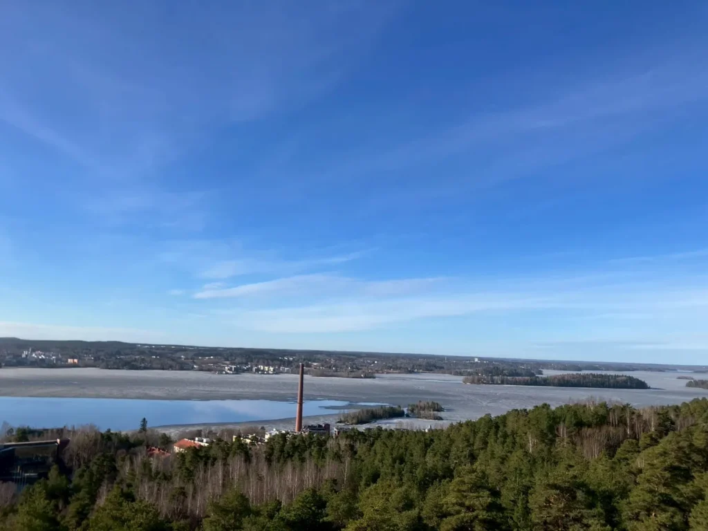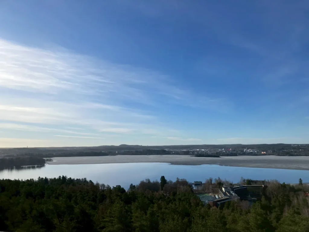 ピューニッキ展望台は、丘の上に建つ高さ約150mのタワーで、街並みと湖を一望できます。
