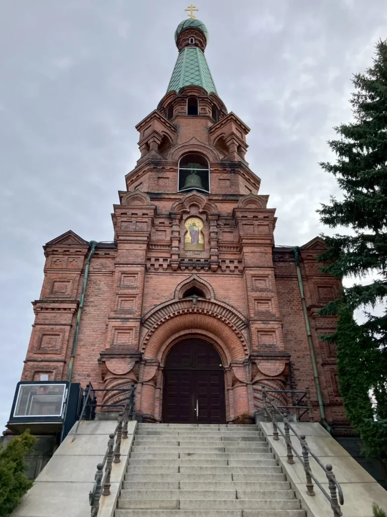 タンペレ正教会(聖アレクサンドル・ネフスキーと聖ニコライ教会)は、タンペレ駅から徒歩10分ほどの場所にあります。